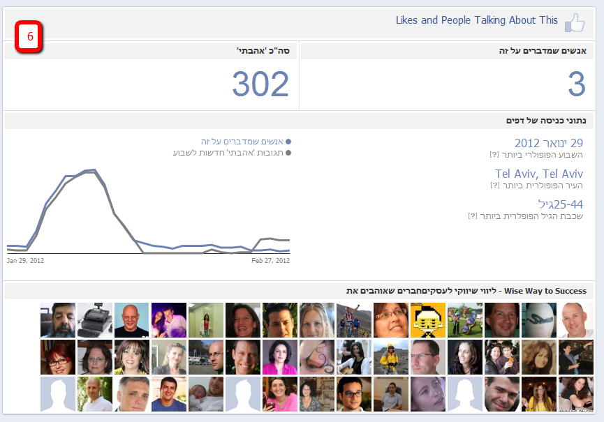 (6) מיהם החברים שלנו שנמצאים בדף ומה הם אומרים – באופן דומה מאוד לזה שהיה קיים עד כה, גם עכשיו נוכל לראות מי מבין האוהדים שלנו נמנים על חברינו, ובקלות רבה נוכל להגיע לתכנים שהם מעלים לפייסבוק, שאינם קשורים באופן ישיר לדף שלנו, אך מעניינים אותנו מטבע היותנו חברים.